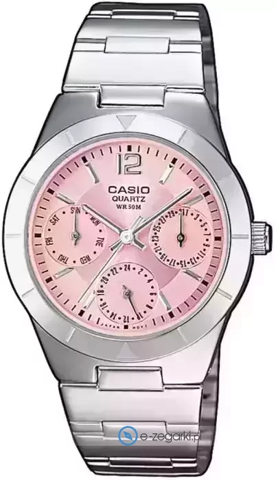 Model LTP-2069D-4AVEG marki Casio to elegancki zegarek naręczny damski, który wyposażono w pomysłowe rozwiązania i funkcje. Wysokiej trwałości tarczę zegarka pokryto różowym kolorem. Zegarek ten prezentuje aktualny czas w formacie analogowym dzięki czemu odczyt jest intuicyjny. Koperta jest w kolorze srebrnym szeroka jest na 36 mm oraz ma grubość 9 mm - ma okrągły kształt.