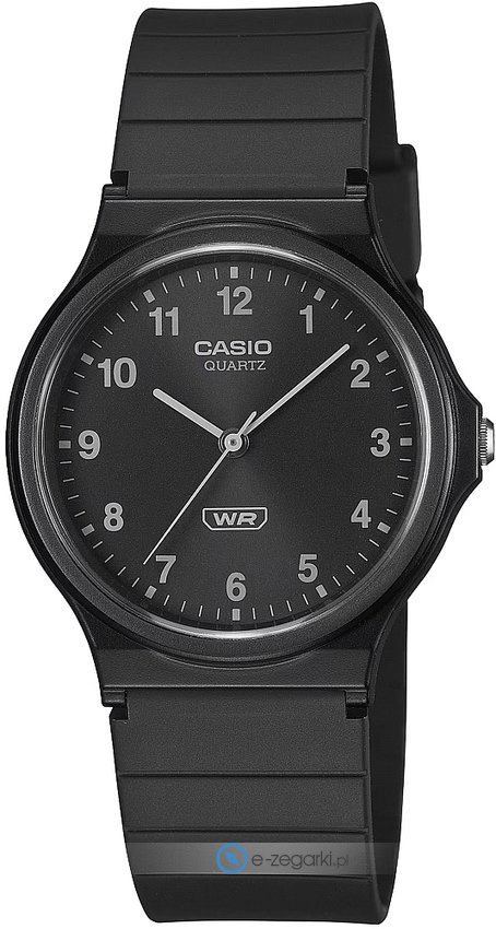 Zegarek damski MQ-24B-1BEF marki Casio to ciekawa pozycja dla ludzi ceniących sobie dbałość o szczegóły oraz sprawne funkcjonowanie mechanizmów. Wysokiej jakości cyferblat zegarka ozdobiono czarnym kolorem. Zaprezentowana metodą analogową aktualna godzina jest czytelna i prosta do odczytania. Koperta jest w kolorze czarnym szeroka jest na 35 mm oraz ma grubość 8 mm - w kształcie okrągłym.