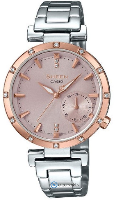 Zegarek SHE-4051SG-4AUER wyposażony jest w mechanizm zasilany tradycyjną baterią kwarcową. Wytrzymała bransoleta wytworzona ze stali nierdzewnej gwarantuje dużo lepszą jakość i trwałość.