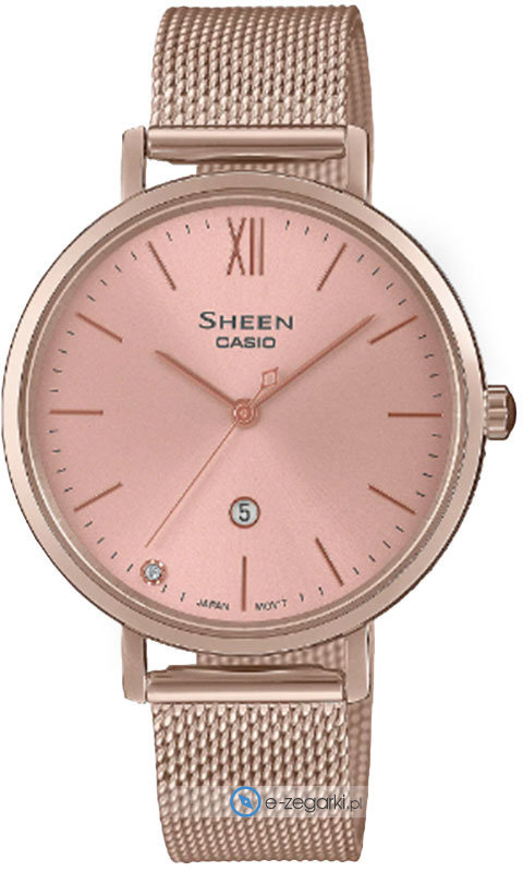 Zegarek SHE-4539CM-4AUER posiada kwarcowy mechanizm zasilany tradycyjną baterią. Odporna na korozję oraz oddziaływanie czynników atmosferycznych bransoleta jest w kolorze różowo złotym cechuje się jakością, a także trwałością.