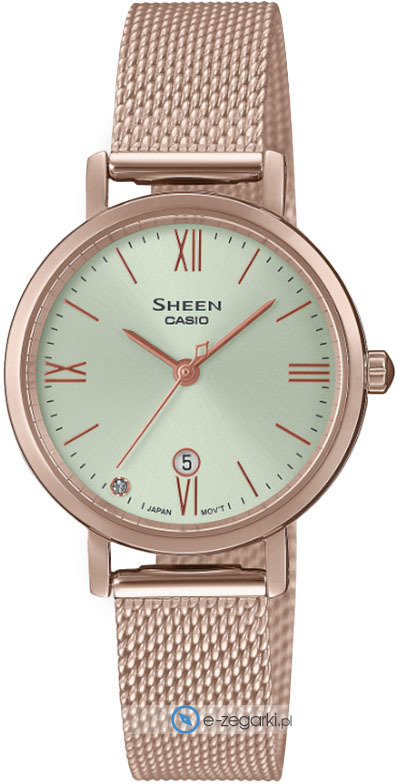 Zasilanie zegarka SHE-4540CM-3AUER to normalna bateria kwarcowa. Wytrzymała bransoleta różowo złotego koloru wykonana ze stali nierdzewnej zapewnia powyższoną jakość i trwałość.