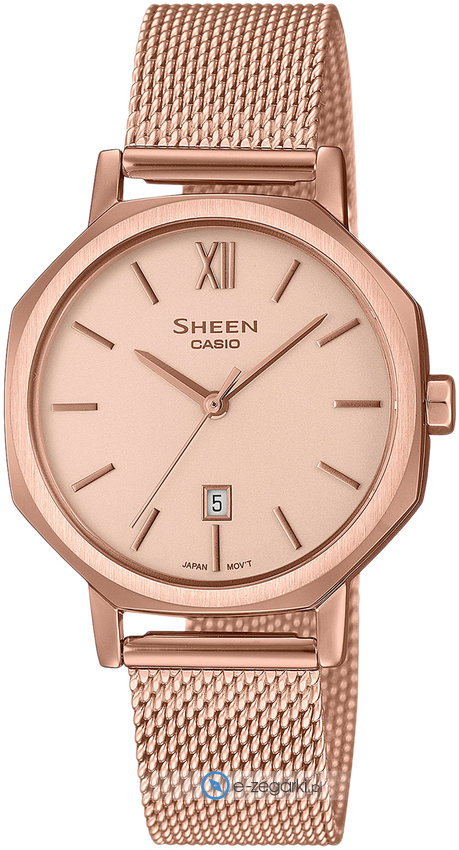 Model SHE-4554PGM-4AUEF posiada mechanizm zasilany tradycyjną baterią kwarcową. Wytrzymała bransoleta jest w kolorze różowo złotym wykonana ze stali nierdzewnej zapewnia wysoką jakość i trwałość.