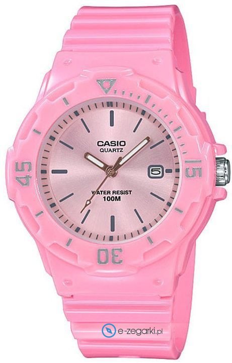 Damski zegarek LRW-200H-4E4 z kolekcji Casio Sports marki Casio to połączenie smaku i nowatorskich funkcji. Charakterystyczną konstrukcję zegarka osiągnięto z pomocą tarczy w kolorze różowym. Zegarek ten prezentuje aktualny czas w formacie analogowym dzięki czemu odczyt jest intuicyjny. Koperta jest w kolorze różowym szeroka jest na 32 mm oraz ma grubość 11 mm - ma okrągły kształt.