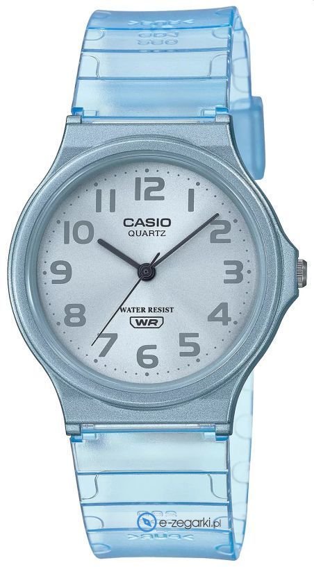 Zasilanie zegarka MQ-24S-2BEF to tradycyjna bateria kwarcowa. Pasek niebieskiego koloru zrobiony jest z wysokiej jakości tworzywa sztucznego.