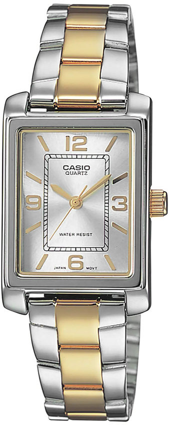 Damski zegarek Casio LTP-1234PSG-7AEG to zegarek, który dzięki swemu wzornictwu zawsze będzie prezentował się dobrze. Charakterystyczną budowę zegarka osiągnięto z pomocą tarczy w kolorze srebrnym. Zegarek ten prezentuje aktualny czas w formacie analogowym dzięki czemu odczyt jest intuicyjny. Koperta w odcieniach koloru srebrnego szeroka jest na 23 mm oraz ma grubość 7 mm - w kształcie prostokątnym.