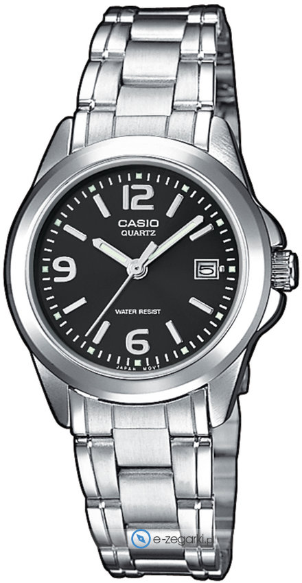 Model damski LTP-1259D-1A z rodziny Casio Standard Analogue marki Casio. Atrakcyjną budowę zegarka uzyskano dzięki tarczy w kolorze ciemnym. Pokazana metodą analogową aktualna godzina jest czytelna i prosta do odczytania. Koperta jest pokryta kolorem srebrnym szeroka jest na 28 mm oraz ma grubość 8 mm - ma okrągły kształt.