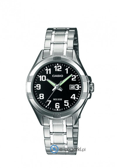Zegarek damski LTP-1308D-1BVEF marki Casio to dobre połączenie funkcjonalności i modnego wzornictwa. Model ten w gamie innych zegarków tego producenta występuje w kolekcji Casio Standard Analogue. Wysokiej jakości tarczę zegarka pokryto czarnym kolorem. Zaprezentowana metodą analogową aktualna godzina jest czytelna i szybka do odczytania. Koperta jest w kolorze srebrnym szeroka jest na 31 mm oraz ma grubość 9 mm - ma okrągły kształt.