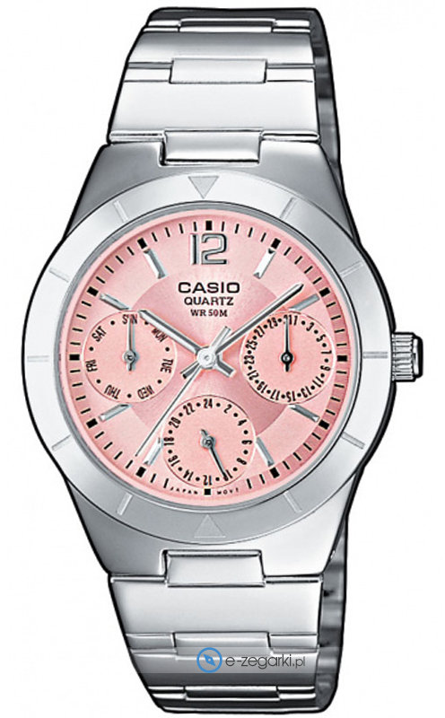 Zegarek LTP-2069D-4AV marki Casio to stylowy zegarek naręczny damski, który jest wyposażony w ciekawe rozwiązania oraz funkcje. Model ten jest z kolekcji Casio Standard Analogue. Wysokiej trwałości tarczę zegarka pokryto różowym kolorem. Zaprezentowana metodą analogową aktualna godzina jest czytelna i prosta do sprawdzenia. Koperta jest pokryta kolorem srebrnym szeroka jest na 31 mm oraz ma grubość 8 mm - charakteryzuje się okrągłym kształtem.