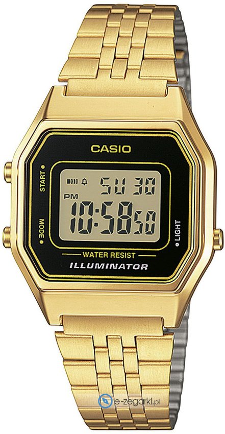 Zegarek damski LA680WEGA-1ER marki Casio to idealne połączenie funkcjonalności oraz modnego wzornictwa. Model ten w gamie innych zegarków tego producenta występuje w serii Casio Standard Digital. Styl zapewnia wysokiej klasy tarcza w kolorze czarnym. Godzina prezentowana jest w sposób cyfrowy co niezmiernie łatwo pozwala ją odczytać. Koperta jest w kolorze złotym szeroka jest na 28 mm oraz ma grubość 8 mm.