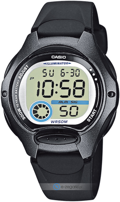 Zegarek damski LW-200-1BV marki Casio należy do serii Casio Standard Digital. Zegarek ten prezentuje aktualny czas w formacie cyfrowym dzięki temu odczyt jest bardzo łatwy. Koperta jest ozdobiona kolorem czarnym szeroka jest na 35 mm oraz ma grubość 11 mm.