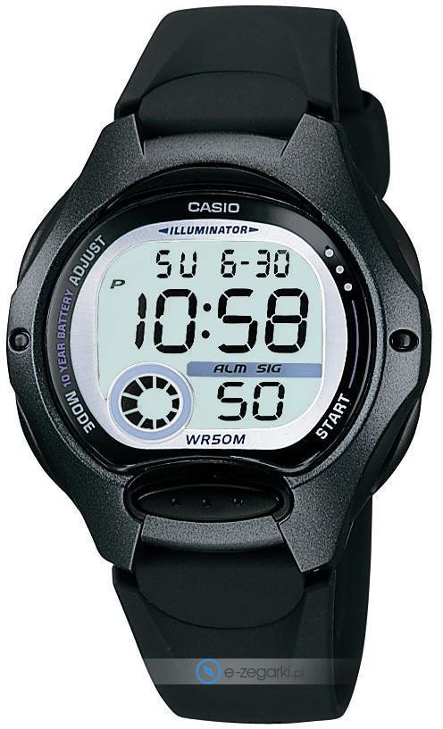 Model damski LW-200-1BVDF marki Casio należy do kolekcji Casio Standard Digital. Zegarek ten pokazuje aktualny czas w formacie cyfrowym dzięki temu odczyt jest bezproblemowy. Koperta w odcieniach koloru czarnego szeroka jest na 35 mm oraz ma grubość 11 mm.