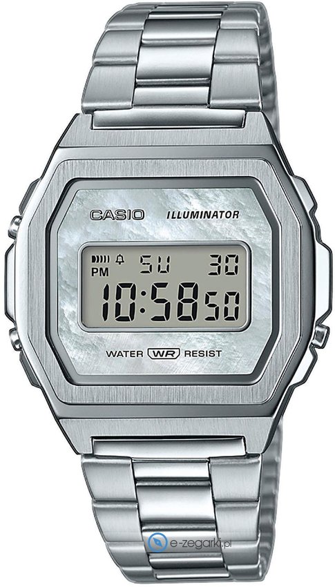Zegarek A1000D-7EF marki Casio to gustowny zegarek naręczny damski, który posiada ciekawe rozwiązania oraz funkcje. Model ten pochodzi z kolekcji Casio Vintage. Godzina zaprezentowana jest w sposób cyfrowy co intuicyjnie pozwala ją odczytać. Koperta jest w kolorze srebrnym szeroka jest na 38 mm oraz ma grubość 7.3 mm - charakteryzuje się prostokątnym kształtem.