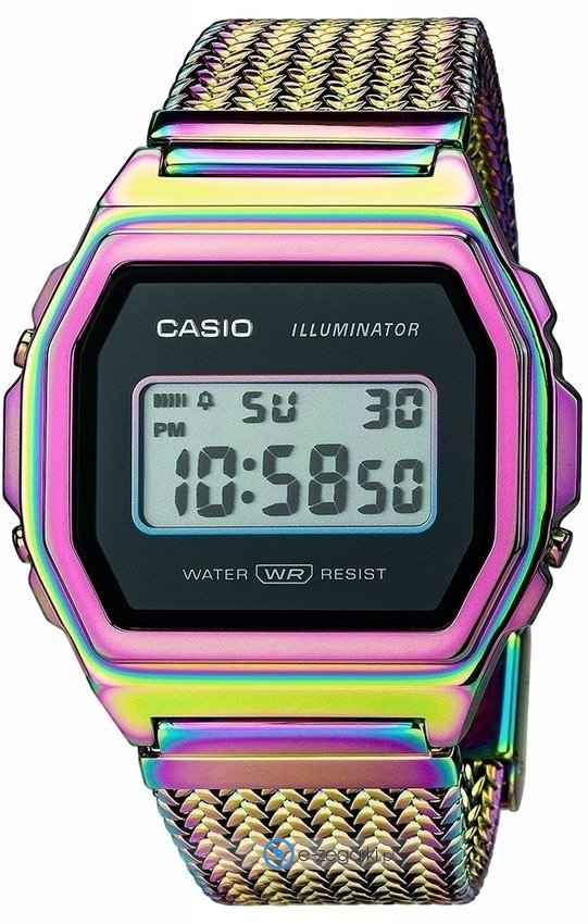 Zegarek A1000PRW-1ER marki Casio to elegancki zegarek naręczny damski, który posiada ciekawe rozwiązania oraz funkcje. Model ten pochodzi z kolekcji Casio Vintage. Godzina prezentowana jest w sposób cyfrowy co intuicyjnie pozwala ją odczytać. Koperta szeroka jest na 38 mm oraz ma grubość 7 mm.