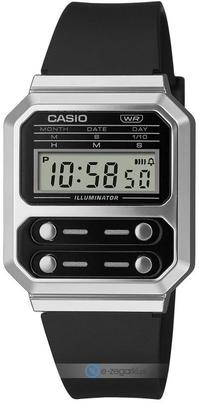Casio A100WEF-1AEF to damski zegarek kierowany dla osób szukających zegarka z serii Casio Vintage. Charakterystyczny wygląd zegarka uzyskano m.in. poprzez tarczę w kolorze czarnym. Zegarek ten prezentuje aktualny czas w formacie cyfrowym dzięki czemu odczyt jest bezproblemowy. Koperta jest w kolorze srebrnym szeroka jest na 33 mm oraz ma grubość 9 mm - posiada prostokątny kształt.