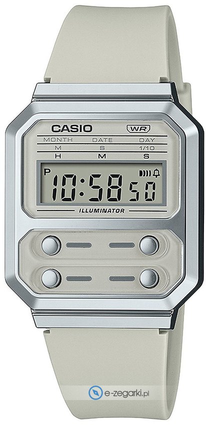 Zegarek damski A100WEF-8AEF marki Casio to idealne połączenie funkcjonalności a także ciekawego wzornictwa. Model ten pochodzi z kolekcji Casio Vintage. Ciekawą budowę zegarka uzyskano z pomocą tarczy w kolorze szarym. Godzina zaprezentowana jest w sposób cyfrowy co niezmiernie łatwo pozwala ją odczytać. Koperta w barwach koloru srebrnego szeroka jest na 33 mm oraz ma grubość 9 mm - w kształcie prostokątnym.