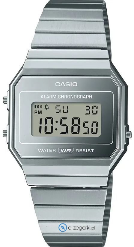 Zegarek A700WEV-7AEF posiada kwarcowy mechanizm zasilany normalną baterią. Wytrzymała bransoleta w tonacji koloru srebrnego zrobiona ze stali nierdzewnej gwarantuje wysoką jakość i trwałość.
