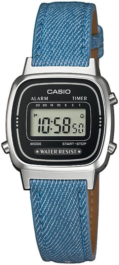 Casio LA670WEL-2A2EF - damski zegarek przeznaczony dla osób szukających zegarka z serii Casio Vintage. Zegarek ten pokazuje godzinę w formacie cyfrowym dzięki czemu odczyt jest bezproblemowy. Koperta szeroka jest na 24 mm oraz ma grubość 7 mm - wyróżnia się prostokątnym kształtem.