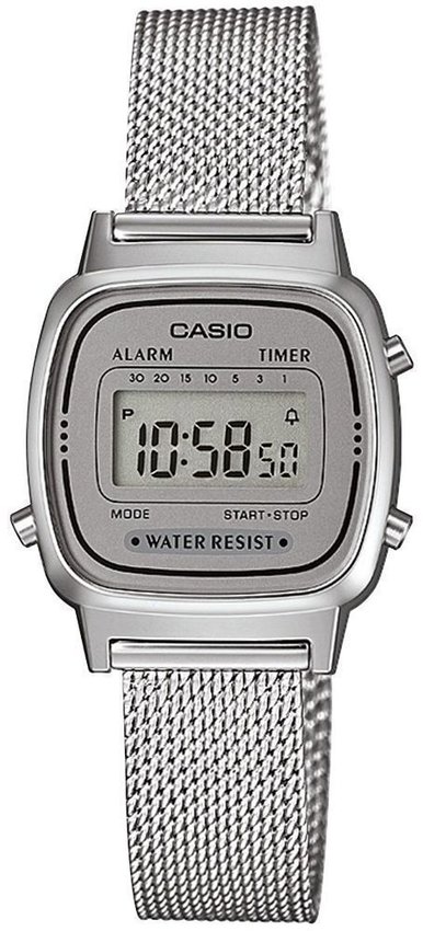 Zegarek damski LA670WEM-7EF marki Casio to dobre połączenie funkcjonalności a także ciekawego wzornictwa. Model ten w gamie pozostałych zegarków tego producenta występuje w kolekcji Casio Vintage. Atrakcyjny wygląd czasomierza osiągnięto również dzięki tarczy w kolorze czarnym. Zegarek ten prezentuje godzinę w formacie cyfrowym dzięki temu odczyt jest intuicyjny. Koperta jest w kolorze srebrnym szeroka jest na 24 mm oraz ma grubość 7 mm - ma prostokątny kształt.