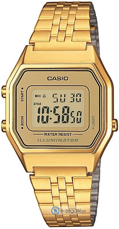 Damski zegarek LA680WEGA-9ER z serii Casio Vintage marki Casio to połączenie smaku oraz nieprzeciętnych funkcji. Wysokiej jakości cyferblat zegarka pokryto złotym kolorem. Pokazana metodą cyfrową aktualna godzina jest czytelna i łatwa do sprawdzenia. Koperta została pokryta kolorem złotym szeroka jest na 28 mm oraz ma grubość 8 mm.