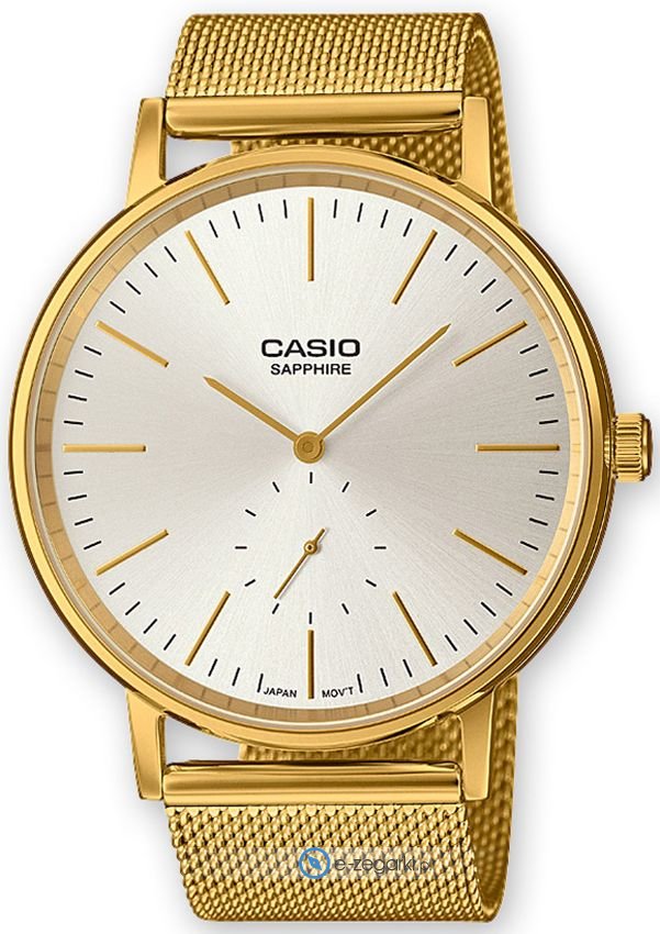 Zegarek LTP-E148MG-7AEF posiada kwarcowy mechanizm zasilany tradycyjną baterią. Bransoleta zrobiona ze stali nierdzewnej gwarantującej wysoką jakość i trwałość, odporność na korozję oraz działanie czynników atmosferycznych. Dodatkowo bransoleta została pokryta powłoką PVD.