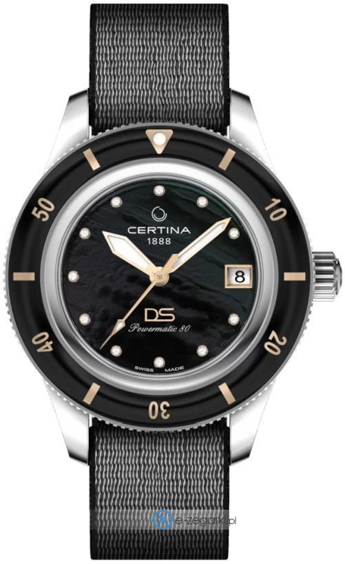 Certina to jedna z najbardziej uznawanych i docenianych szwajcarskich marek zegarków na świecie. Sama jej nazwa wywodzi się od łacińskiego znaczenia pewny co najlepiej rzutuje na samą powagę marki. Zegarki Certina to klasyka bez żadnego problemu broniąca się przed upływającym czasem. Jak przystało na taką markę czasomierze produkowane są tylko z najszlachetniejszych dostępnych surowców. Na przełomie lat marka ta otrzymała wiele gratyfikacji, zaszczytów czy medali - nierzadko zostawiając za sobą konkurencję w prestiżowych zawodach. Certina jest także właścicielem najrozmaitszych patentów wykorzystywanych przy produkcji zegarków. Ponieważ to szwajcarska marka to na tarczach tych zegarków nie mogło również zabraknąć uznanego na całym świecie emblematu Swiss Made.