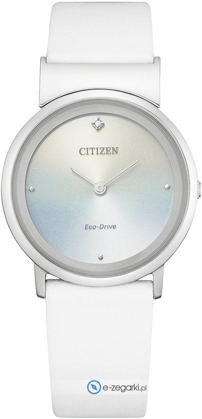 Zegarek EG7070-14A posiada autorski mechanizm Citizen Eco-Drive zasilany dowolnym źródłem światła. Pasek koloru białego wykonany jest z wysokiej jakości tworzywa sztucznego.