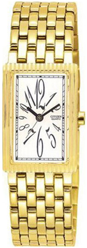 Model damski EJ5412-54B marki Citizen z kolekcji Citizen Elegance. Ciekawy wygląd zegarka uzyskano także dzięki tarczy w kolorze białym. Zaprezentowana metodą analogową aktualna godzina jest czytelna i prosta do odczytania. Koperta jest w kolorze złotym szeroka jest na 18 mm - wyróżnia się prostokątnym kształtem.