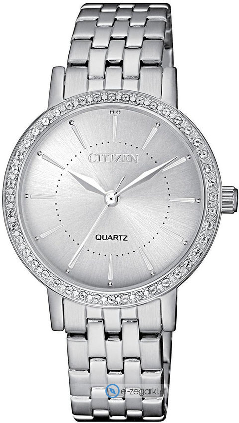 Zegarek EL3040-80A marki Citizen to elegancki zegarek naręczny damski, który wyposażono w pomysłowe rozwiązania i funkcje. Model ten jest z kolekcji Citizen Elegance. Cyferblat zegarka jest w kolorze szarym. Pokazana metodą analogową aktualna godzina jest czytelna i łatwa do sprawdzenia. Koperta w odcieniach koloru stalowego szeroka jest na 31 mm oraz ma grubość 7 mm - wyróżnia się okrągłym kształtem.