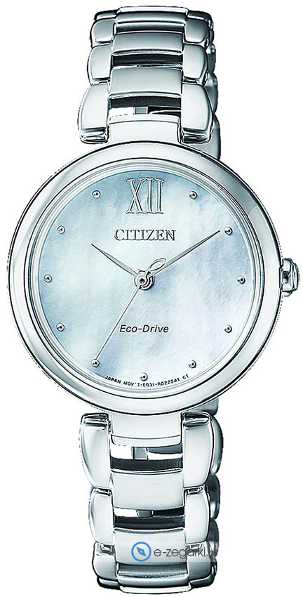 Zegarek EM0530-81D posiada autorski mechanizm Citizen Eco-Drive zasilany dowolnym źródłem światła. Odporna na korozję oraz oddziaływanie czynników atmosferycznych bransoleta w odcieniach koloru srebrnego zapewnia wysoką jakość i trwałość.
