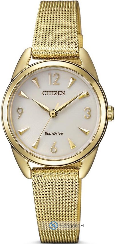Zastosowano tu autorski mechanizm Citizen Eco-Drive dzięki czemu zegarek EM0687-89P jest zasilany jakimkolwiek źródłem światła. Odporna na korozję oraz oddziaływanie czynników atmosferycznych bransoleta jest w kolorze złotym cechuje się jakością, a także trwałością.