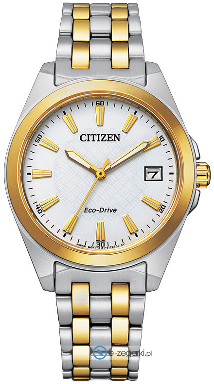 Model damski EO1214-82A z serii Citizen Elegance marki Citizen. Nieschematyczny wygląd zegarka uzyskano m.in. poprzez cyferblat w kolorze białym. Zaprezentowana metodą analogową aktualna godzina jest czytelna i prosta do sprawdzenia. Koperta jest w kolorze srebrno złotym szeroka jest na 34 mm oraz ma grubość 9 mm - w kształcie okrągłym.