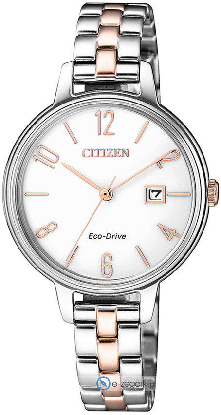 Zegarek damski EW2446-81A zalicza się do kolekcji Citizen Elegance marki Citizen. Charakterystyczny wygląd czasomierza osiągnięto m.in. poprzez cyferblat w kolorze białym. Pokazana metodą analogową bieżąca godzina jest czytelna i łatwa do odczytania. Koperta jest w kolorze stalowym szeroka jest na 31 mm oraz ma grubość 8 mm - w kształcie okrągłym.
