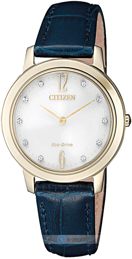 Model damski EX1493-13A marki Citizen należy do rodziny Citizen Elegance. Niebanalny wygląd czasomierza uzyskano m.in. poprzez tarczę w kolorze białym. Pokazana metodą analogową bieżąca godzina jest czytelna i szybka do sprawdzenia. Koperta w odcieniach koloru złotego szeroka jest na 29 mm oraz ma grubość 6 mm - w kształcie okrągłym.