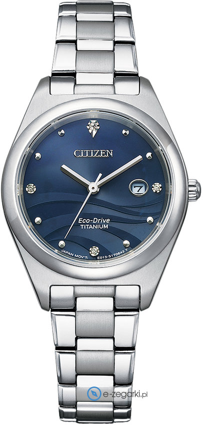 Zegarek EW2600-83L posiada autorski mechanizm Citizen Eco-Drive zasilany dowolnym źródłem światła. Bransoleta srebrnego koloru zrobiona jest z tytanu, który jest o około 40 procent lżejszy od stali, bardziej wytrzymały, jak również antyalergiczny.