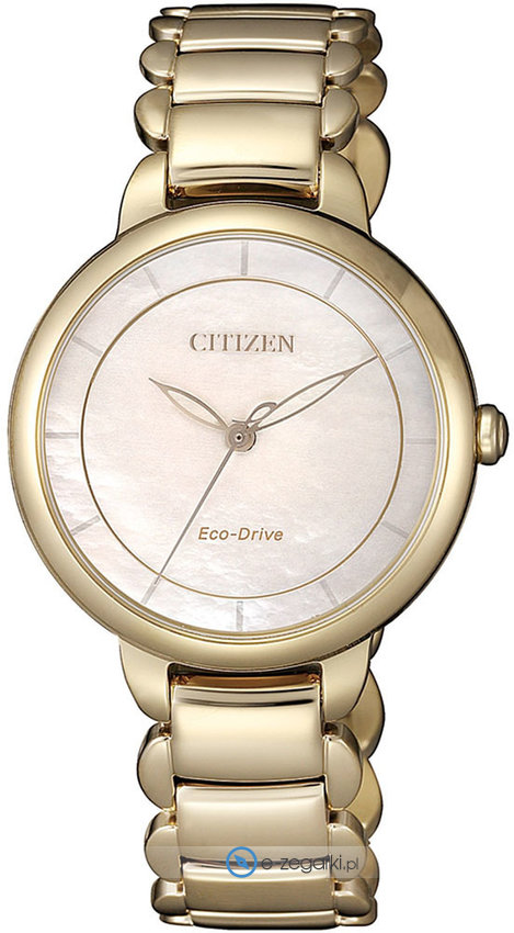 Zegarek EM0673-83D posiada autorski mechanizm Citizen Eco-Drive zasilany jakimkolwiek źródłem światła. Odporna na korozję oraz działanie czynników atmosferycznych bransoleta koloru złotego cechuje się jakością, a także trwałością.