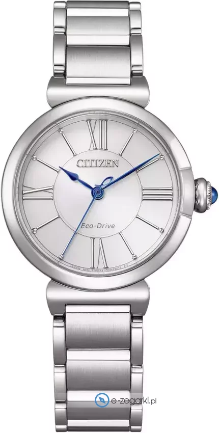 Zegarek EM1070-83A wyposażono w mechanizm Citizen Eco-Drive, który czerpie energię z dowolnego źródła światła. Srebrna bransoleta, odporna na korozję i czynniki atmosferyczne, gwarantuje trwałość i komfort noszenia.