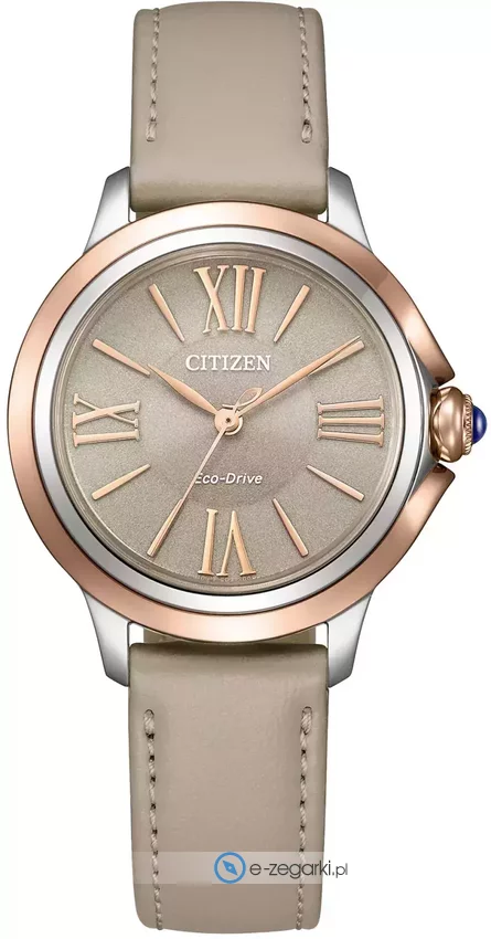 Zegarek EM1166-01Z został wyposażony w autorski mechanizm Citizen Eco-Drive zasilany jakimkolwiek źródłem światła. Pasek koloru szarego wykonany jest z wysokiej jakości skóry gwarantującej trwałość i komfort użytkowania.