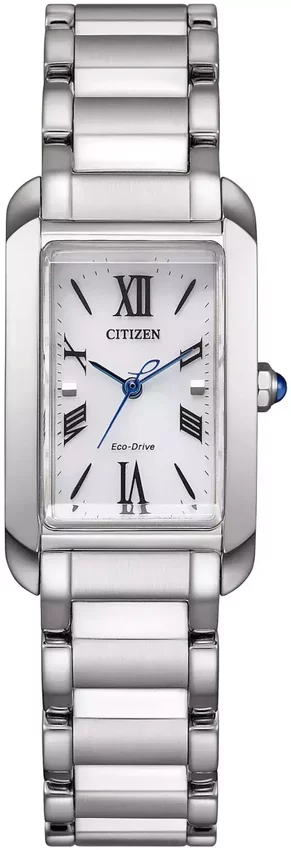 Model damski EW5620-55A należy do kolekcji Citizen L marki Citizen. Stylu dodaje wysokiej klasy tarcza w kolorze białym. Godzina prezentowana jest w sposób analogowy co bez trudu pozwala ją odczytać. Koperta w odcieniach koloru srebrnego szeroka jest na 20 mm oraz ma grubość 7.5 mm - w kształcie prostokątnym.