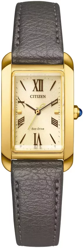 Model damski EW5622-09P marki Citizen to kwintesencja japońskiej precyzji i harmonii, zamknięta w eleganckiej formie. Niebanalny wygląd zegarka osiągnięto dzięki tarczy w kolorze złotym, która dodaje mu subtelnego blasku. Aktualna godzina prezentowana jest w sposób analogowy, co intuicyjnie pozwala ją odczytać. Jeśli poszukujesz czasomierza, który łączy w sobie wysoką jakość wykonania i ponadczasowy design, koniecznie sprawdź pełną ofertę Citizen L. Koperta jest ozdobiona kolorem złotym, ma 20 mm szerokości i 7 mm grubości, a jej prostokątny kształt idealnie komponuje się z kobiecym nadgarstkiem.