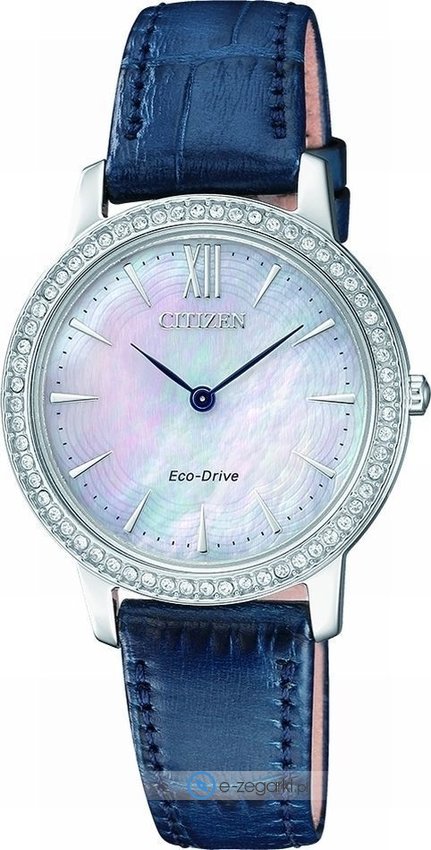Zegarek EX1480-15D został wyposażony w opatentowany mechanizm Citizen Eco-Drive zasilany jakimkolwiek źródłem światła. Pasek w tonacji koloru niebieskiego zrobiony jest z wysokiej klasy skóry gwarantującej trwałość i wygodę noszenia.