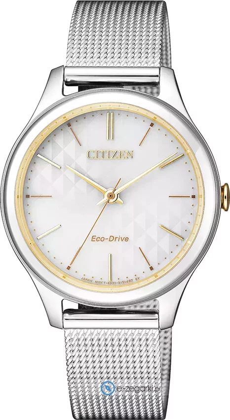 Zegarek EM0504-81A został wyposażony w opatentowany mechanizm Citizen Eco-Drive zasilany dowolnym źródłem światła. Wytrzymała bransoleta w odcieniach koloru srebrnego zrobiona ze stali nierdzewnej gwarantuje wysoką jakość oraz trwałość.