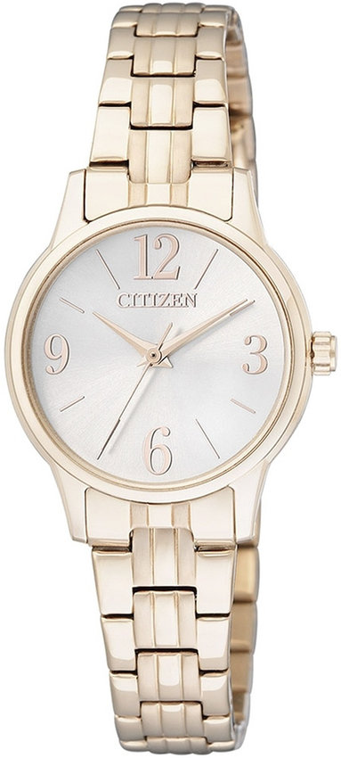 Zegarek damski EX0293-51A marki Citizen to stylowe połączenie funkcjonalności i modnego designu. Model ten w gamie innych zegarków tego producenta występuje w kolekcji Citizen Lady. Stylu dodaje wysokiej klasy tarcza w kolorze białym. Zegarek ten prezentuje godzinę w formacie analogowym dzięki temu odczyt jest bardzo łatwy. Koperta w barwach koloru różowo złotego szeroka jest na 28 mm oraz ma grubość 8 mm - w kształcie okrągłym.