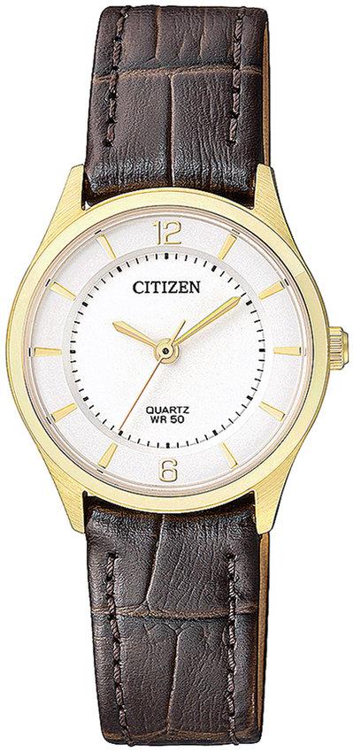 Zegarek ER0203-00B marki Citizen to gustowny zegarek naręczny damski, który posiada ciekawe rozwiązania i funkcje. Model ten zalicza się do kolekcji Citizen Leather. Tarcza zegarka jest w kolorze białym. Pokazana metodą analogową bieżąca godzina jest czytelna i łatwa do odczytania. Koperta jest w kolorze złotym szeroka jest na 26 mm oraz ma grubość 6 mm - w kształcie okrągłym.