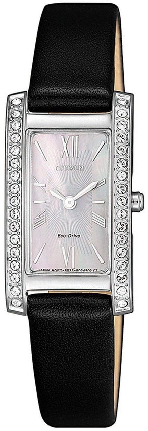 Zegarek EX1471-16D marki Citizen to stylowy zegarek naręczny damski, który posiada pomysłowe rozwiązania oraz funkcje. Model ten należy do serii Citizen Leather. Charakterystyczny wygląd czasomierza osiągnięto m.in. poprzez cyferblat w kolorze perłowym. Zegarek ten pokazuje godzinę w formacie analogowym dzięki czemu odczyt jest intuicyjny. Koperta w odcieniach koloru srebrnego szeroka jest na 18 mm oraz ma grubość 7 mm - cechuje się prostokątnym kształtem.