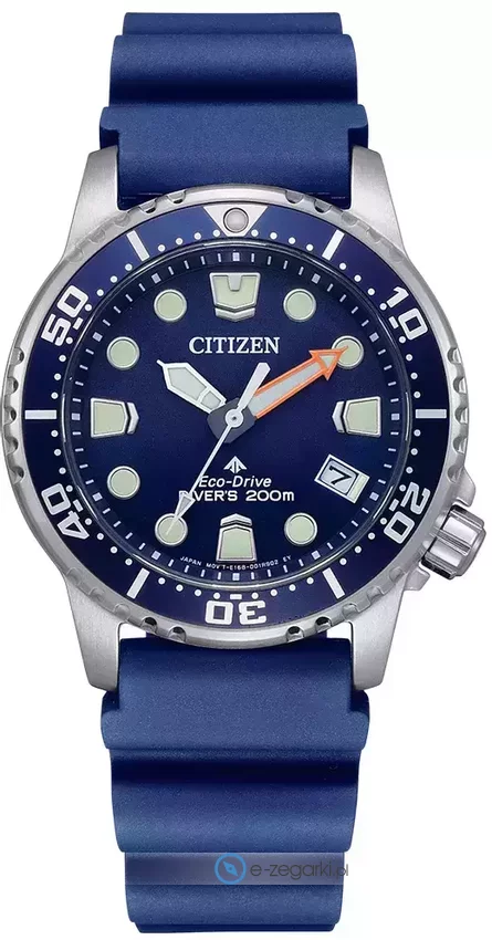 Zegarek damski EO2021-05L marki Citizen to idealne połączenie funkcjonalności a także modnego wzornictwa. Model ten w gamie innych zegarków tego producenta występuje w kolekcji Citizen Promaster. Wysokiej jakości cyferblat zegarka pokryto granatowym kolorem. Aktualna godzina prezentowana jest w sposób analogowy co niezmiernie łatwo pozwala ją odczytać. Koperta szeroka jest na 36 mm oraz ma grubość 12 mm - w kształcie okrągłym.