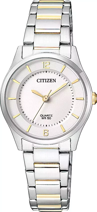 Zegarek damski ER0201-72A marki Citizen z rodziny Citizen Sports. Charakter zapewnia wysokiej jakości tarcza w kolorze szarym. Aktualna godzina prezentowana jest w sposób analogowy co niezmiernie łatwo pozwala ją odczytać. Koperta jest pokryta kolorem stalowym szeroka jest na 26 mm oraz ma grubość 6 mm - w kształcie okrągłym.