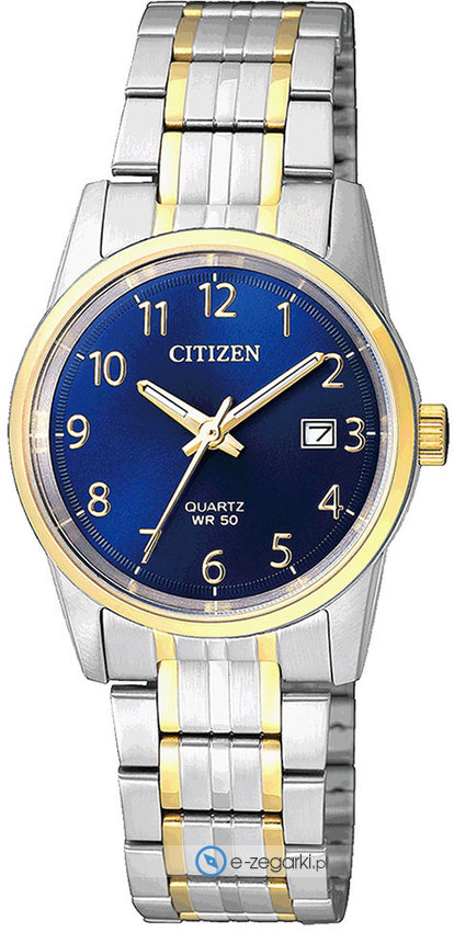 Zegarek damski EU6004-56L marki Citizen to stylowe połączenie funkcjonalności a także modnego designu. Model ten w gamie pozostałych zegarków tego producenta występuje w serii Citizen Sports. Niebanalny wygląd czasomierza osiągnięto również dzięki tarczy w kolorze granatowym. Zegarek ten prezentuje aktualny czas w formacie analogowym dzięki temu odczyt jest intuicyjny. Koperta jest w kolorze złotym szeroka jest na 27 mm oraz ma grubość 7 mm - ma okrągły kształt.