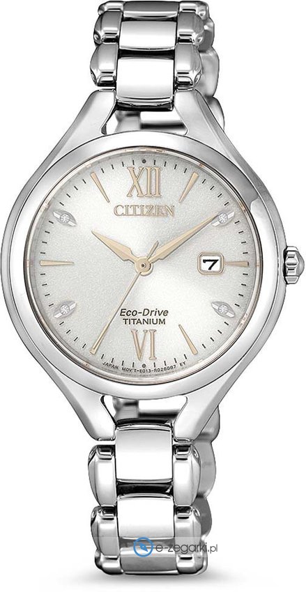 Zegarek EW2560-86A posiada opatentowany mechanizm Citizen Eco-Drive zasilany jakimkolwiek źródłem światła. Bransoleta koloru srebrnego zrobiona jest z tytanu, który jest znacznie lżejszy od stali, bardziej wytrzymały i dodatkowo antyalergiczny.