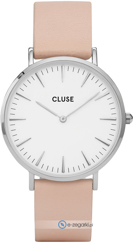 Model damski CW0101201019 marki Cluse należy do rodziny Cluse Boho Chic. Niebanalny wygląd czasomierza osiągnięto m.in. poprzez cyferblat w kolorze białym. Zaprezentowana metodą analogową bieżąca godzina jest czytelna i łatwa do odczytania. Koperta w odcieniach koloru srebrnego szeroka jest na 38 mm oraz ma grubość 7 mm - cechuje się okrągłym kształtem.