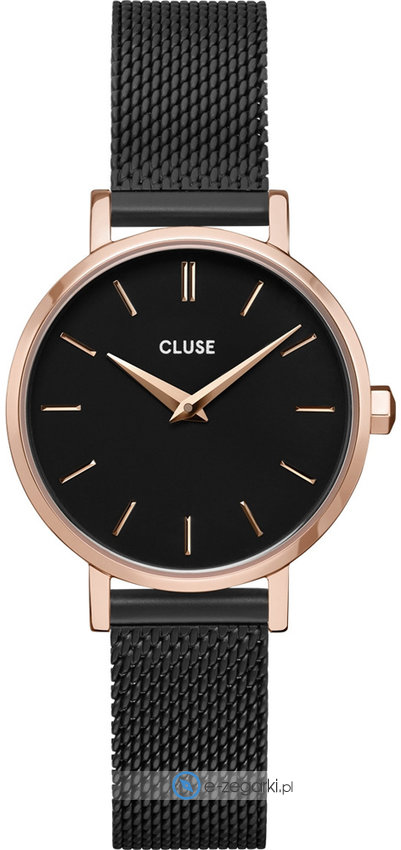Zegarek damski CW0101211004 marki Cluse to dobre połączenie funkcjonalności oraz modnego designu. Model ten w gamie pozostałych zegarków tego producenta występuje w serii Cluse Boho Chic Petite. Atrakcyjną stylistykę czasomierza uzyskano z pomocą tarczy w kolorze czarnym. Godzina prezentowana jest w sposób analogowy co intuicyjnie pozwala ją odczytać. Koperta w odcieniach koloru różowo złotego szeroka jest na 28 mm oraz ma grubość 6 mm - posiada okrągły kształt.